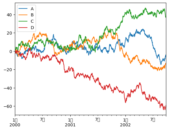 df = pd.DataFrame(np.random.randn(1000 , 4 ), index= ts.index, columns= list ("ABCD" ))