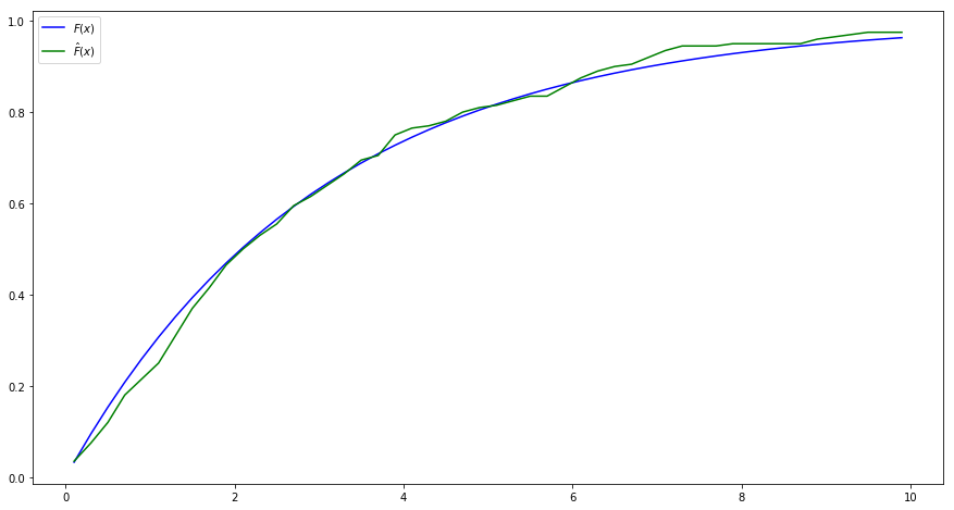 接下来,我们使用matplotlib将李璐的分布函数和计算的经验分布函数画在了图上。
