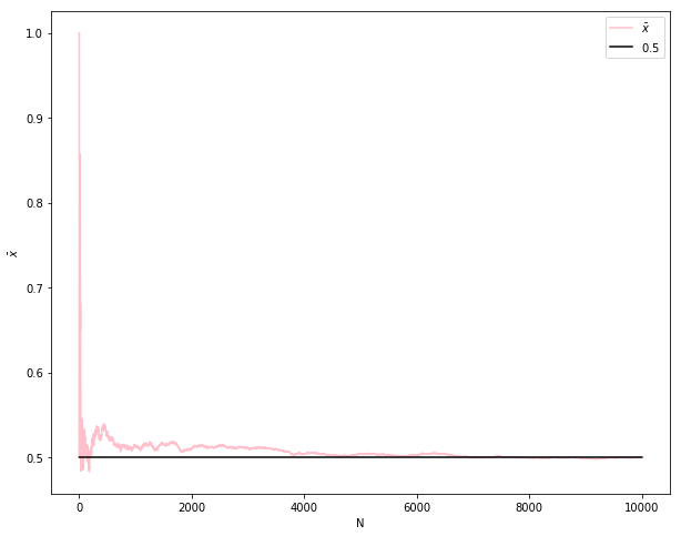 plt.plot(N,xtrue,label= r'$0.5$' ,color= 'black' ) ## true xbar